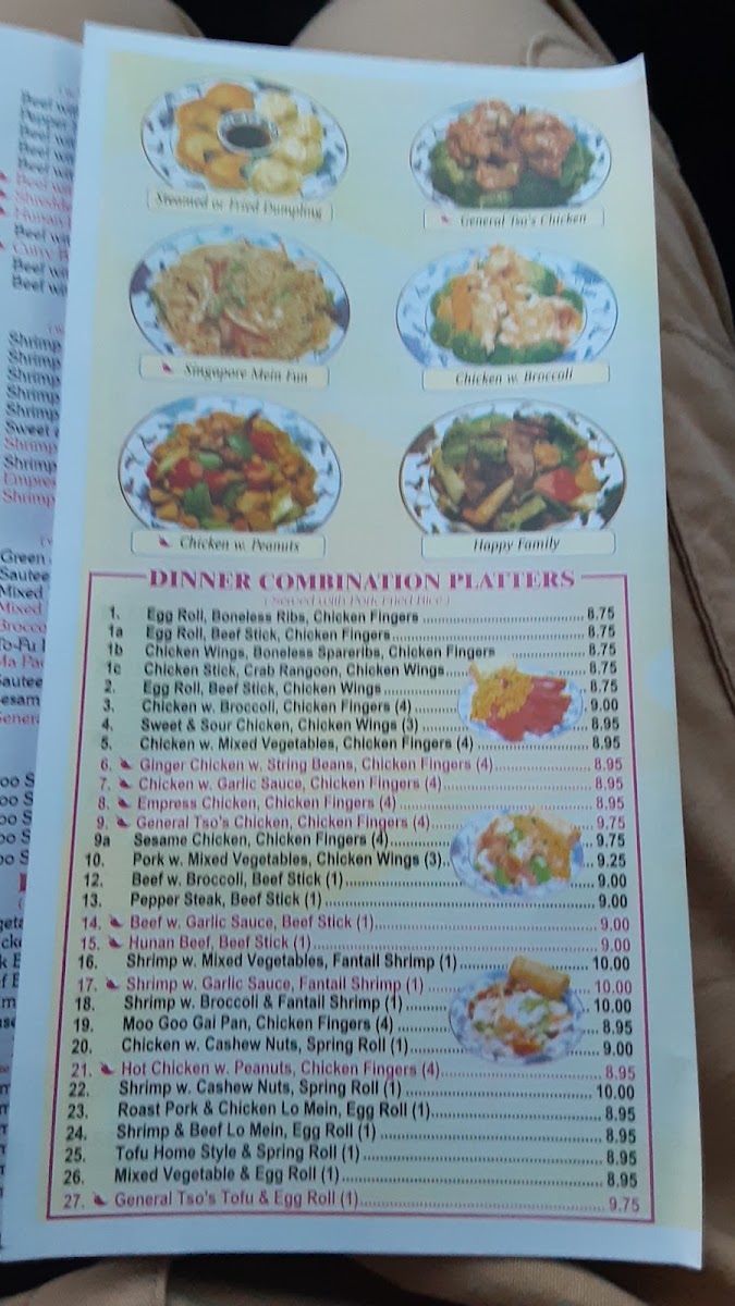 The main entrees feature a range of well-loved choices including General Tso’s Chicken, Orange Chicken, and a variety of stir-fried and sauced specialties. The balanced flavors and familiar preparations complement the restaurant’s warm, family-run atmosphere, making each visit feel comfortable and welcoming.